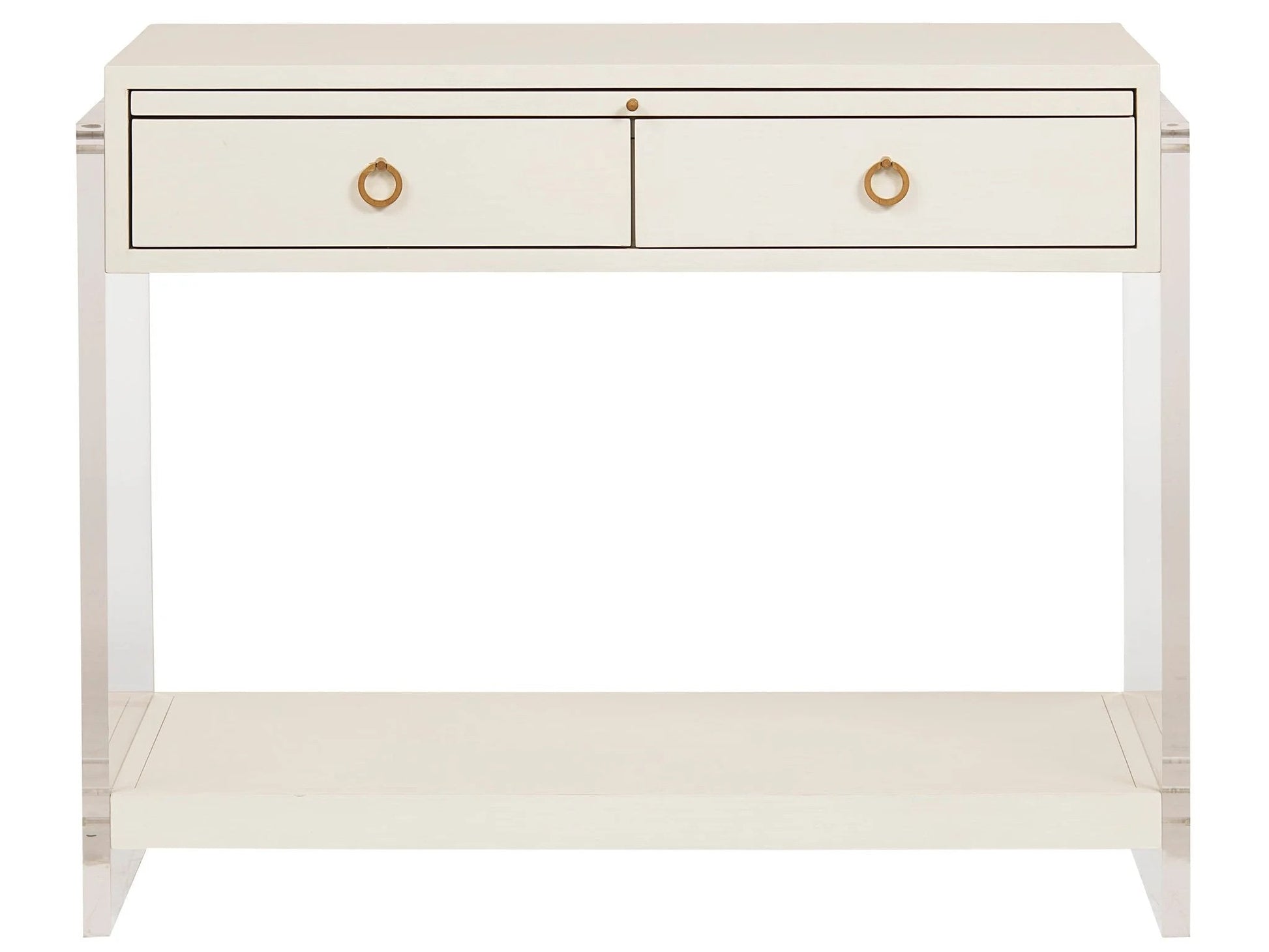 Showcasing classic coastal style with a modern twist, the Belize Nightstand brings a lightness to spaces with two drawers, open-air storage, gold ring pulls, and as-sleek-as-can-be acrylic ends complemented by a white finish56W X 26D X 30H