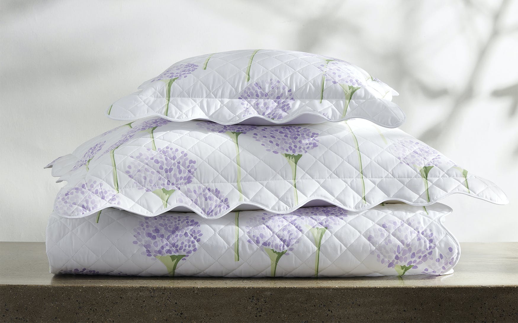 Lulu DK for Matouk's Charlotte Bed Linens is a classic and bestselling floral collection that's chic and timeless for every spring and summer bed. This is Lulu DK for Matouk's best-selling pattern, and it's no wonder why. The all-over allium floral print is evocative of a charming garden of allium flowers in beautiful colorful hues. Crafted of 500 thread count Egyptian cotton percale, the Charlotte bedding collection is graceful and just so pretty.