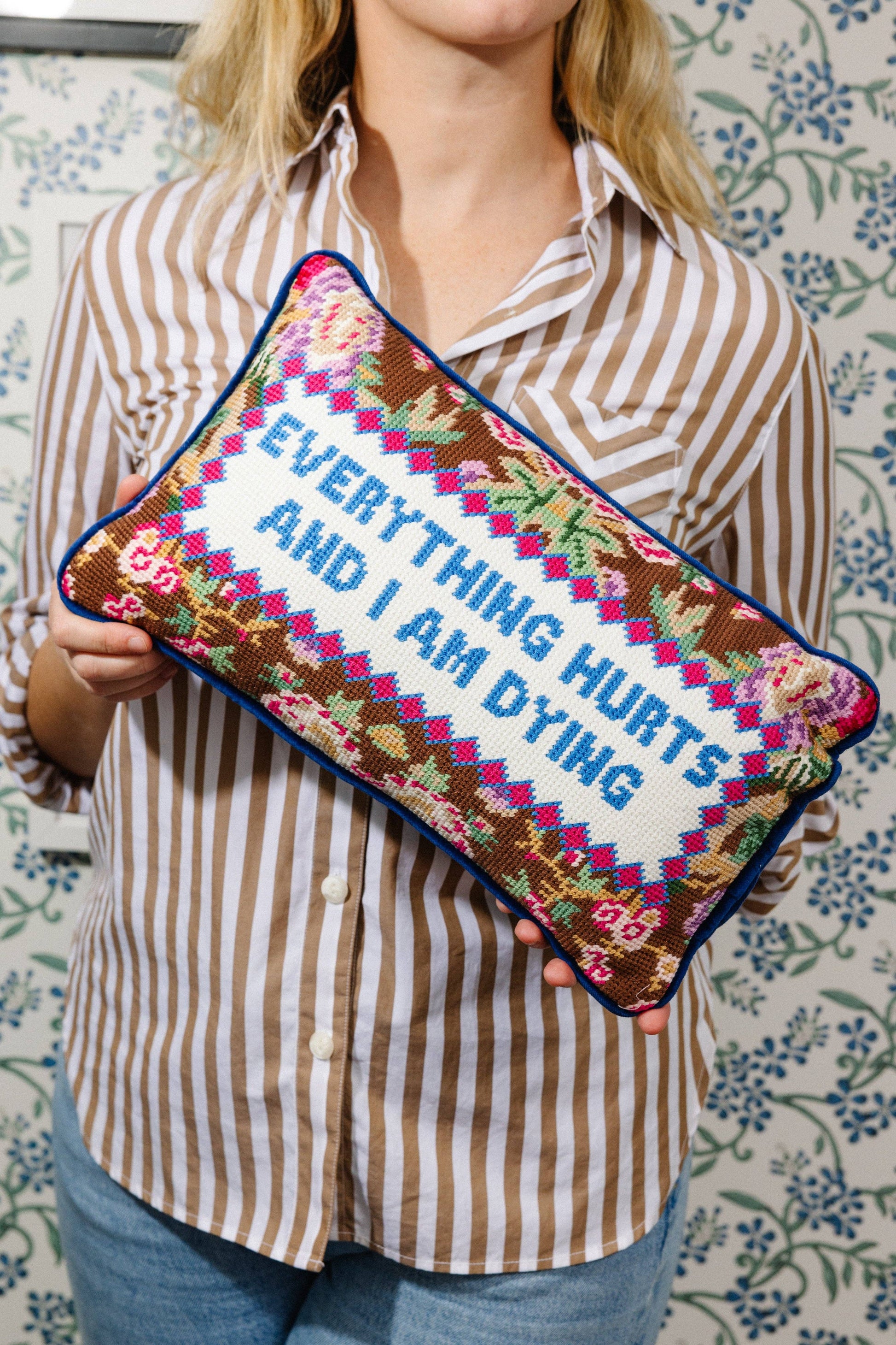 Everything Hurts Needlepoint Pillow