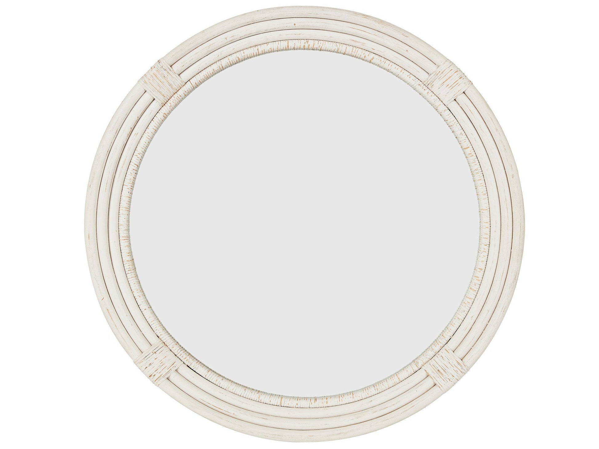 Reminiscent of knotted nautical ropes, the Getaway Round Mirror is a versatile accent piece, featuring layers of circular rings in a distressed finish.PRODUCT DIMENSIONS38W X 3D X 38H
