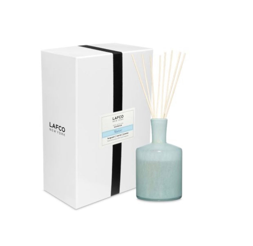 Essential Oil Based Fragrances, Natural wood reeds, Free of dyes, propellants and other synthetic ingredients. All LAFCO products are vegan, gluten and cruelty-free, and contain no phthalates or parabens. Lasts up to 9 month. 4" D x 6.5" H (12" H with reeds), 15 oz