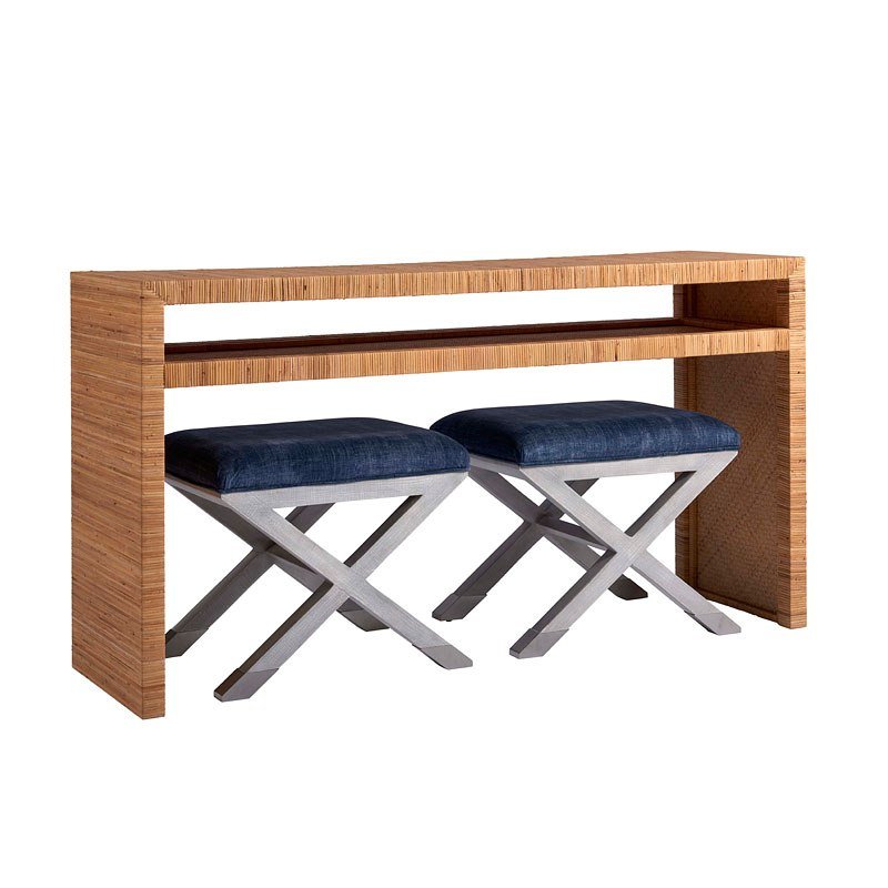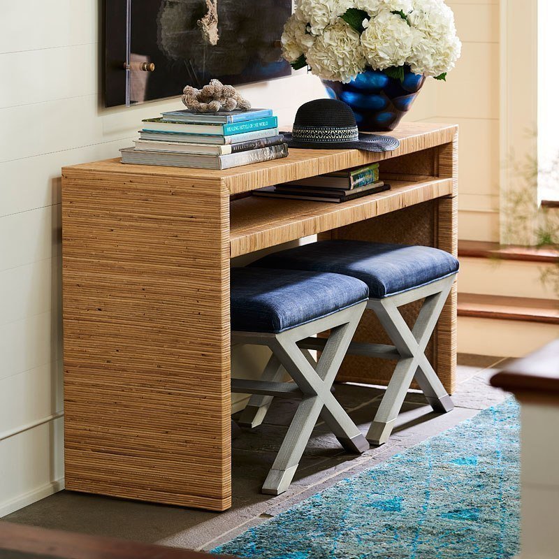 Add a coastal vibe to your living room with the Long Key Table. You'll love having the Long Key Console Table in your home for its tropical style and functionality. The piece is fully covered in a wrapped split rattan that truly evokes coastal living, while the simple case design keeps it modern.Table Dimensions: W:50 x D:24 x H:18C