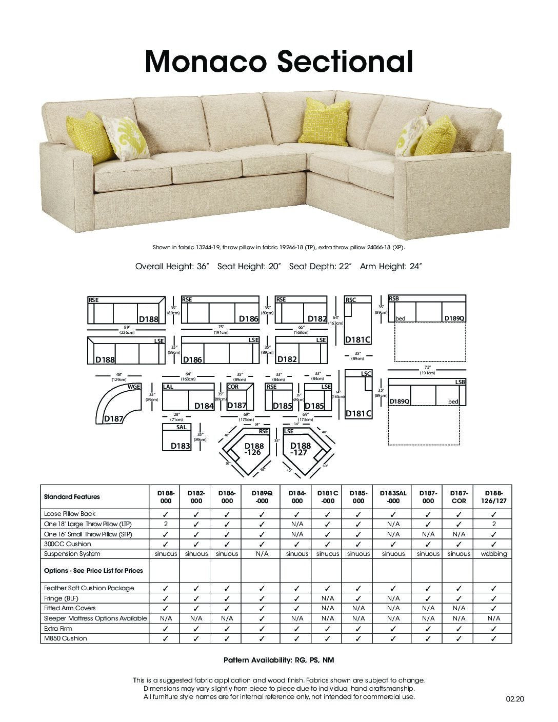 Rowe Monaco Sofa Provide a cozy and comfortable atmosphere in your home with the Monaco Mini Sofa around your living room. This piece will accent all the furniture surrounding it. Because of the elegance of this piece, obviously it cannot be overstated. It will help you obtain and maintain your dream living room. So, indulge your home with this functional and state of the art piece.Dimensions, Sofa: 79"L x 35" D x 36" H*Available in different fabrics.