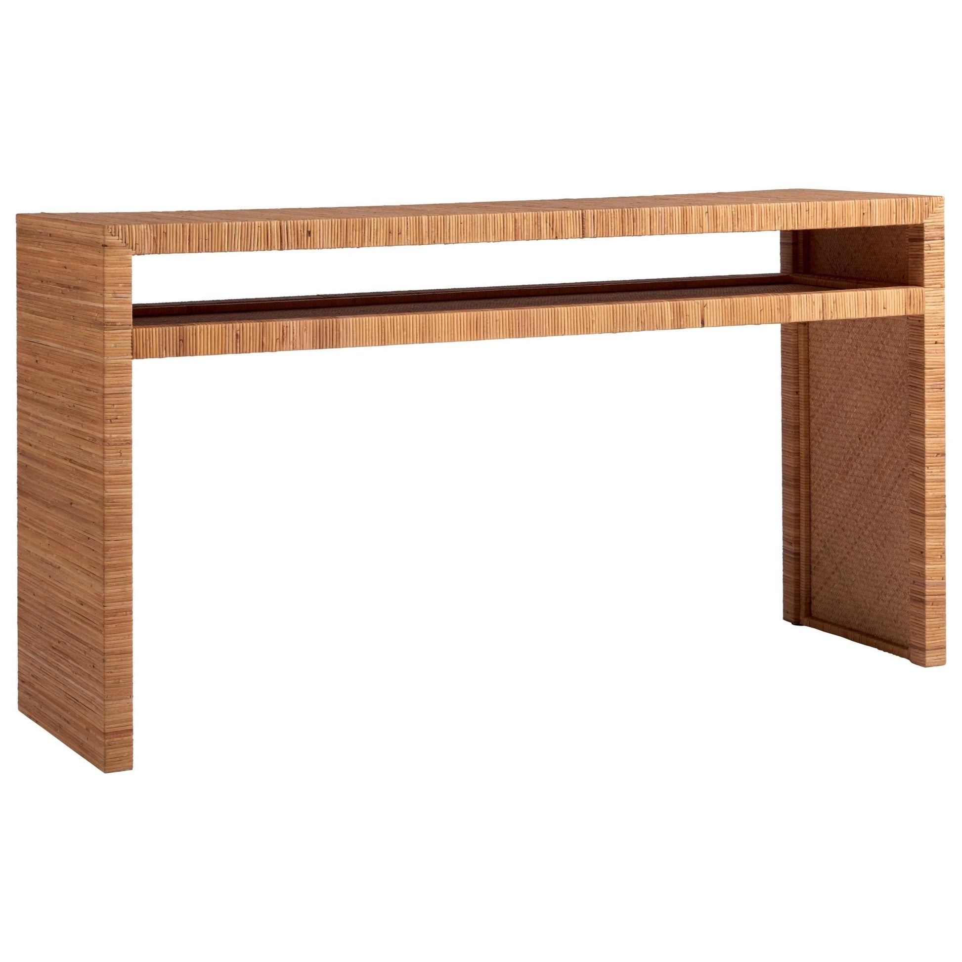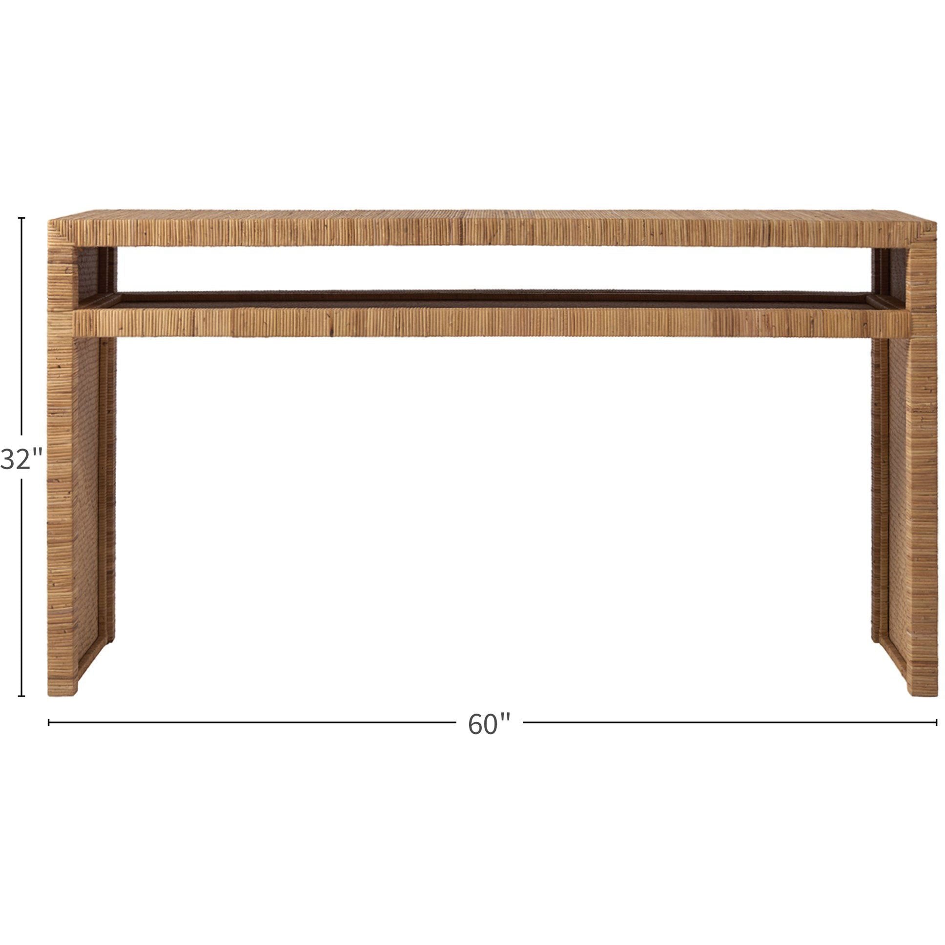 Instantly add warmth and familiarity to spaces with the Long Key Console Table, a slender, simple accent piece boasting an earthy, wrapped rattan frame.Dimensions: 60W X 18D X 32H